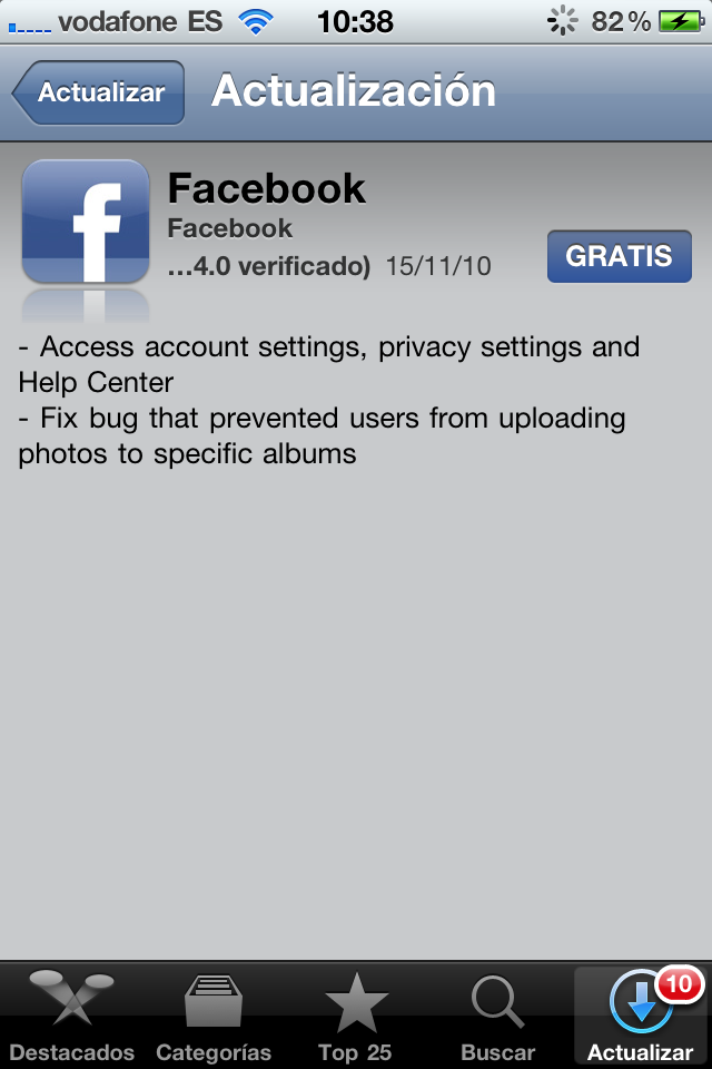 The application of Facebook has received a new minor update, adding a shortcut to our account options, privacy and support center, and correct a bug that was at the time of upload images to specific albums.