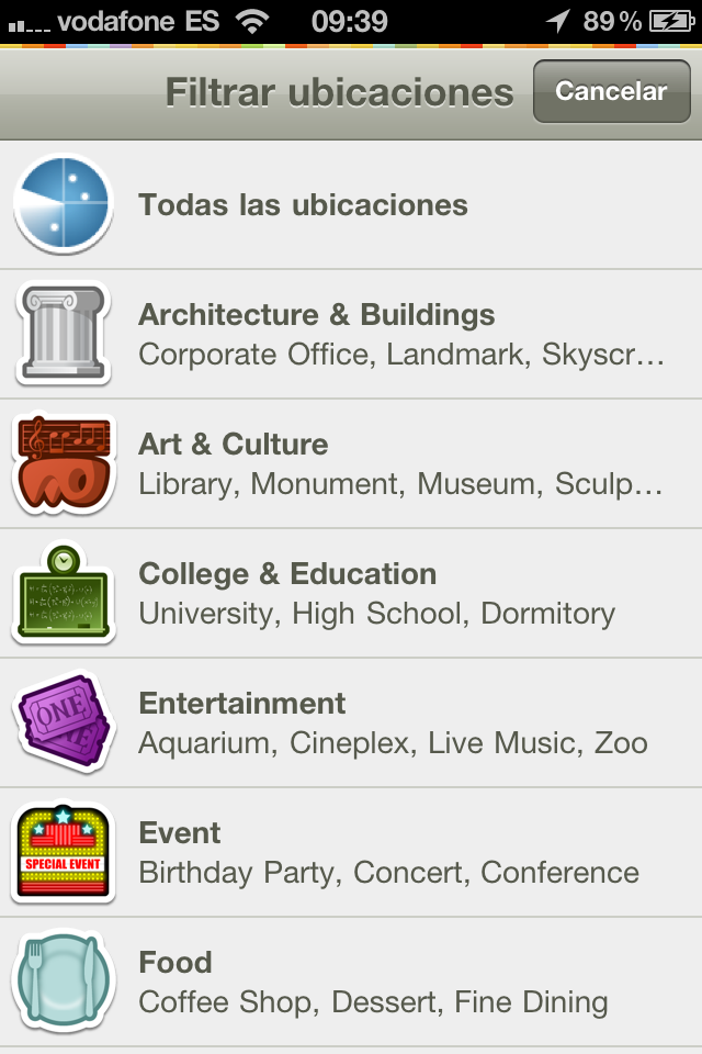 - Publication of check-ins more services: Twitter, Facebook Places, Foursquare, and Tumblr.