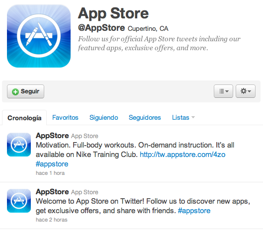 Follow us to receive the tweets official App Store, where applications include highlights, exclusive offers and more.