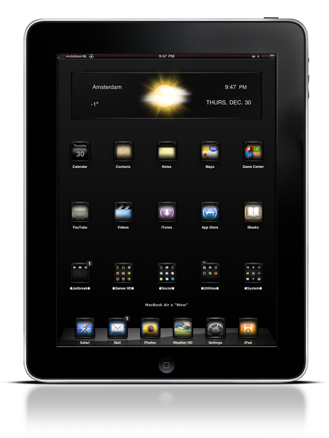 Weather information can change over iFile SSH or by modifying the route private/var/stash/Themes/BlackHaz3-HD Wallpaper.html iPad.theme Weather, and finally, the days and months can be changed to Spanish or the language you want, Widget.html file playing on the same route.